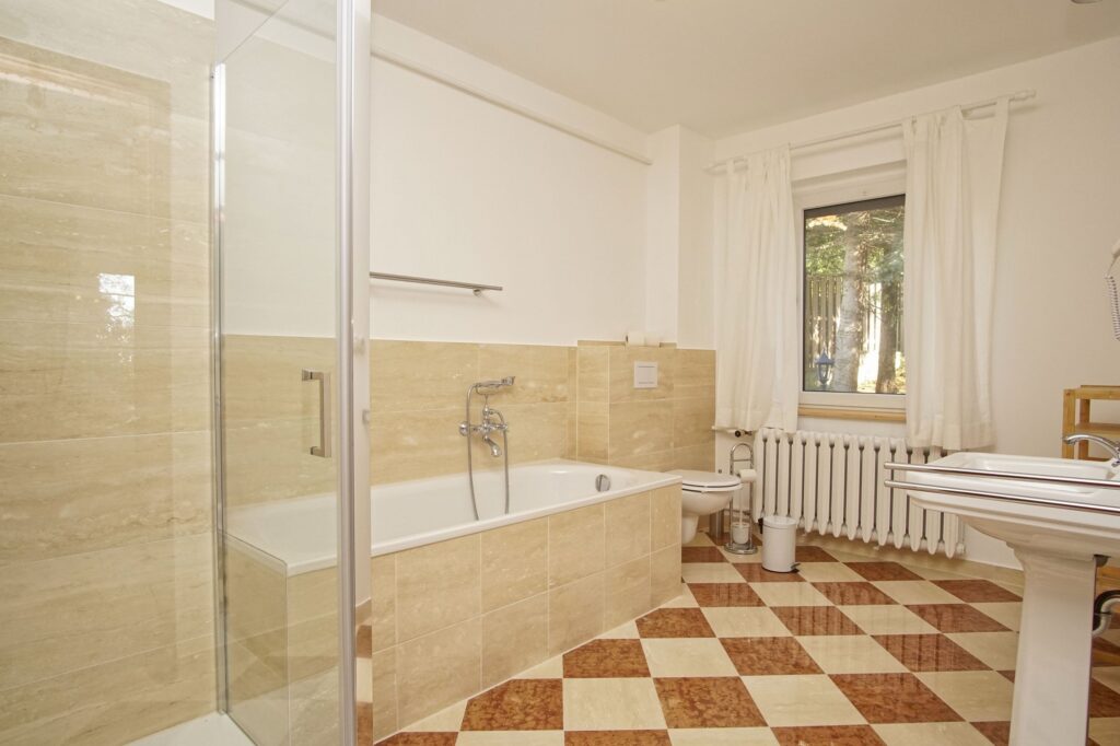 Im separaten Schlafzimmer erwarten Sie ein gemütliches Doppelbett und ein geräumiger Kleiderschrank. Von hier aus blicken Sie ins Grüne und starten entspannt in den Tag und der direkte Zugang zum Wintergarten macht den Raum besonders einladend. Das großzügige Badezimmer bietet sowohl Dusche als auch Badewanne, WC und Waschbecken. Ein Fenster sorgt für angenehmes Tageslicht.