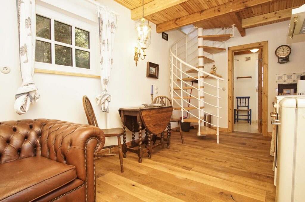 Wichtiger Hinweis: Der Schlafbereich ist über eine schmale, steilere Wendeltreppe zu erreichen und bietet aufgrund der Bauweise keine volle Stehhöhe. Daher empfehlen wir diese Unterkunft nicht für ältere Gäste oder Personen mit eingeschränkter Mobilität. Wir danken für Ihr Verständnis – Ihr Wohlbefinden liegt uns am Herzen. Im Badezimmer erwarten Sie Dusche, WC, Waschbecken sowie ein Fenster, das für Tageslicht und frische Luft sorgt.