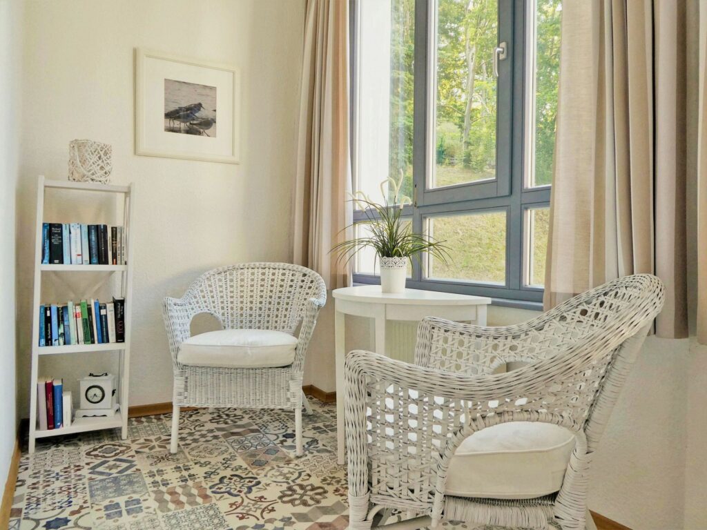 Der großzügige Wohnbereich ist mit einer bequemen Couch sowie zwei Sessel und einem Flachbild-TV ausgestattet. Vom Wohnzimmer aus gelangen Sie direkt auf die beheizbare Veranda, auf der ein Essplatz für gemeinsame Mahlzeiten zur Verfügung steht. Eine kleine Leseecke bietet zusätzlichen Raum für ruhige Momente.
