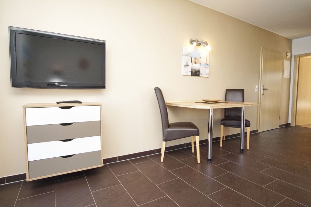 Die geräumige 2-Raum-Ferienwohnung ist 38 m² groß und bietet Platz für bis zu 2 Personen. Das separate Schlafzimmer hat neben dem gemütlichen Doppelbett einen Kleiderschrank. Der Wohnbereich bietet neben der voll ausgestatteten Kü...Weiterlesenchenzeile ein gemütliches Sofa. Der Flachbildfernseher sorgt für die Unterhaltung. Der Zugang zur möblierten Terrasse erfolgt über den Wohnbereich. Das Badezimmer mit Tageslicht ist bestens mit einer Dusche, einem WC und einem Waschbecken ausgestattet. Die Internetverbindung über Wlan kann gerne kostenfrei genutzt werden, sowie der Parkplatz am Haus. Ein Hund ist hier herzlich willkommen.